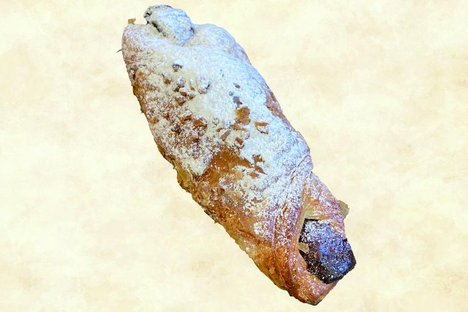 ザクザクデニッシュにアーモンドが入ったチョコを包んで焼き上げました‼