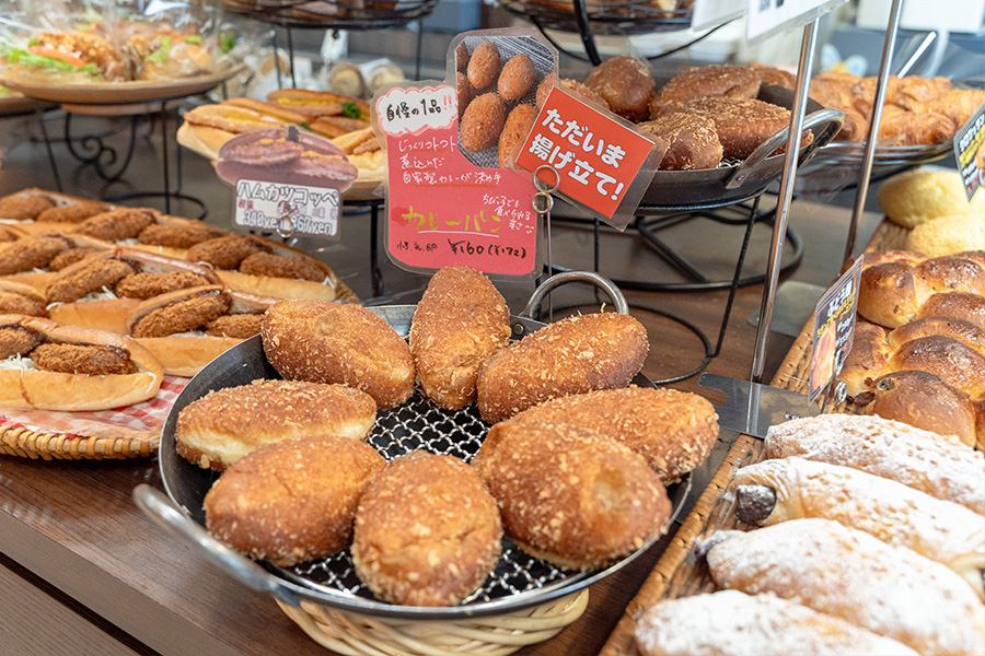 地域で愛される梅屋敷店では、揚げたてのコロッケコッペや自家製フィリングのカレーパンなど、いつでもできたての美味しさをご提供。