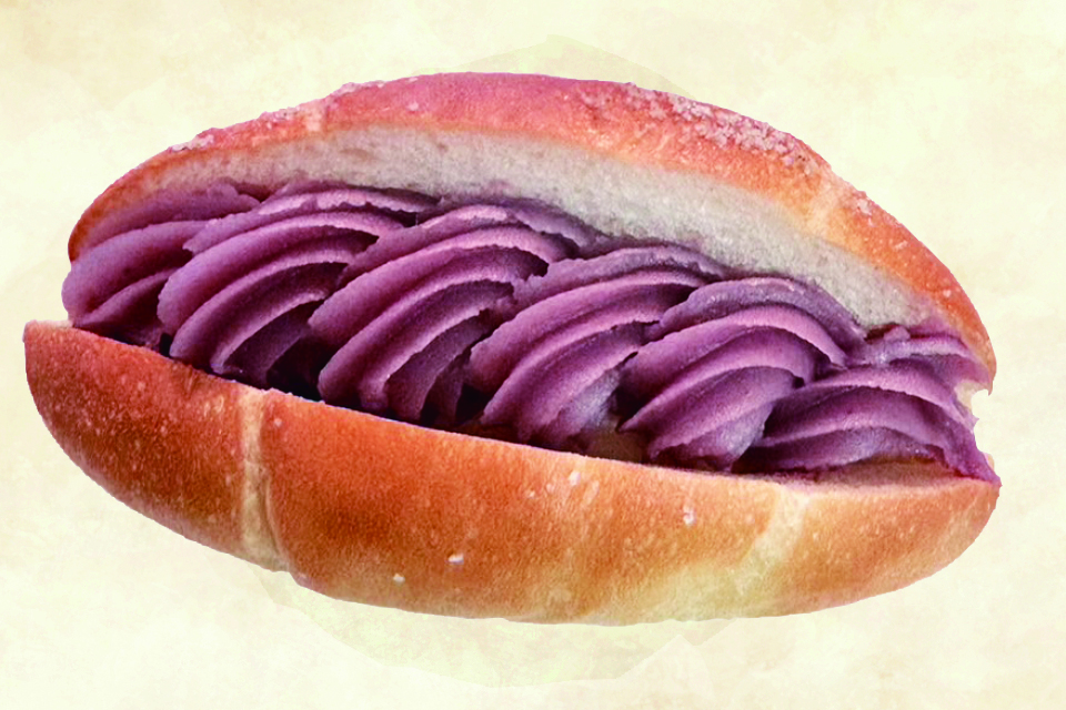 人気の塩ロールに紫芋のクリームを挟みましたむらさき芋の塩ロール