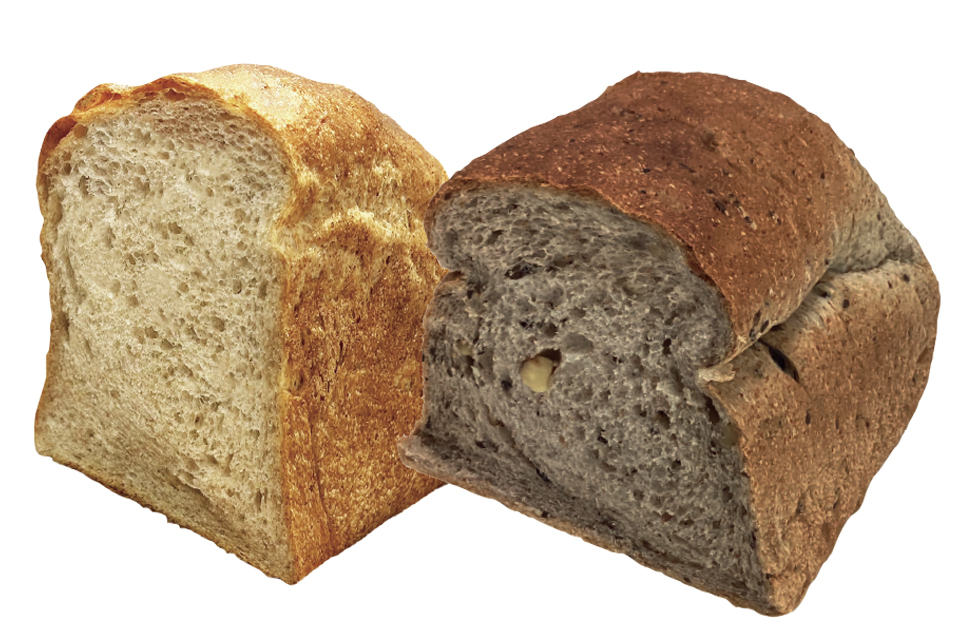 国産小麦の表皮も含めて挽いた全粒粉ブレッドと米・あわ・きび・豆等とくるみが入った全粒粉ブレッド